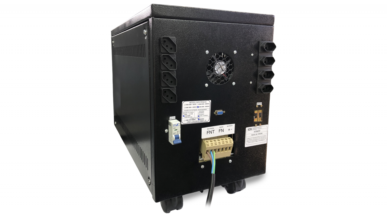 Acondicionado em caixa de aço com pintura epóxi anticorrosiva padra IP 20 e dodtado de rodízios e ventilação forçada microventilador